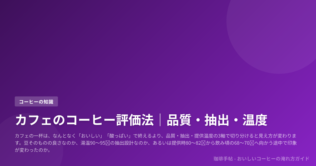 カフェの一杯は、なんとなく「おいしい」「酸っぱい」で終えるより、品質・抽出・提供温度の3軸で切り分けると見え方が変わります。
