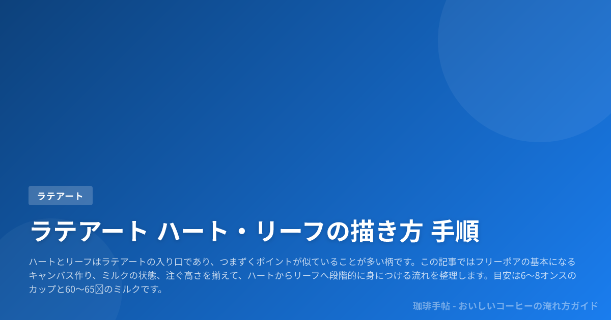 次の1杯で直せることを目指して、ハートは液面が概ね1/2〜2/3程度、リーフはおおむね1/3〜半分程度を目安にしつつ(カップサイズやミルクの粘度、注ぎ流量で最適タイミングは前後します)、70℃以上を避ける温度感や失敗の逆引きまで具体化しました。