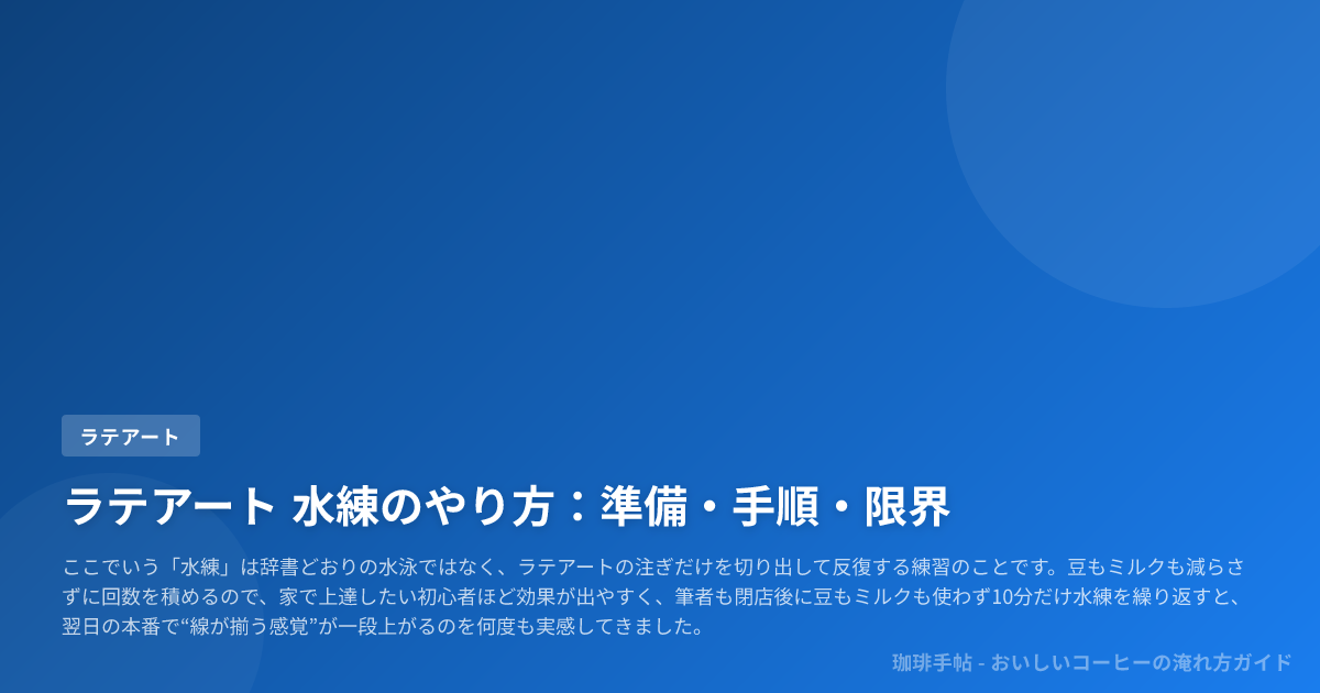 ここでいう「水練」は辞書どおりの水泳ではなく、ラテアートの注ぎだけを切り出して反復する練習のことです。