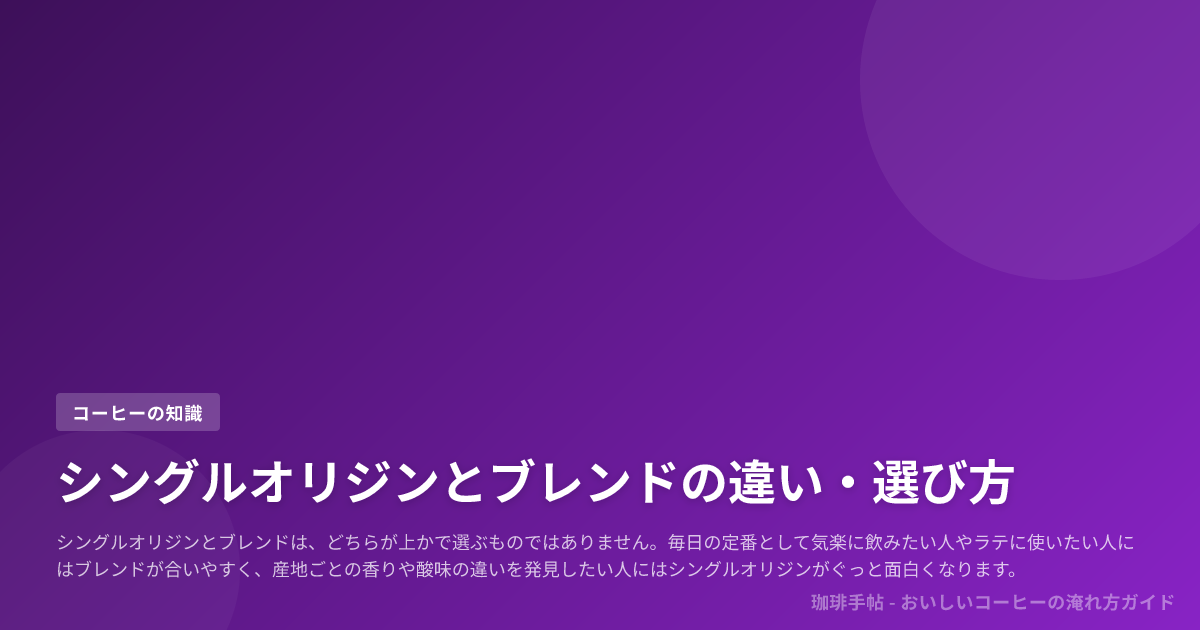 シングルオリジンとブレンドは、どちらが上かで選ぶものではありません。毎日の定番として気楽に飲みたい人やラテに使いたい人にはブレンドが合いやすく、産地ごとの香りや酸味の違いを発見したい人にはシングルオリジンがぐっと面白くなります。
